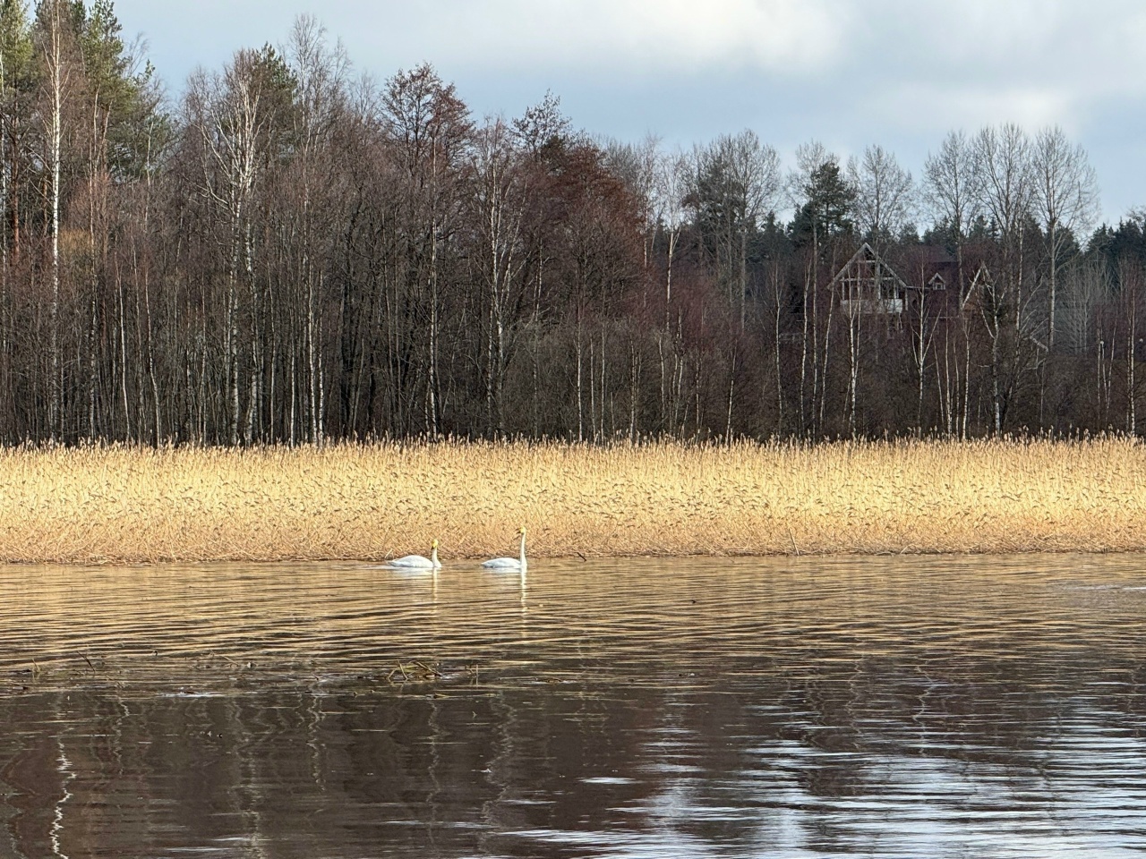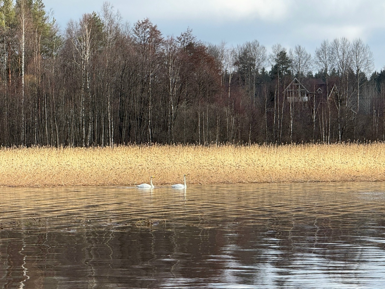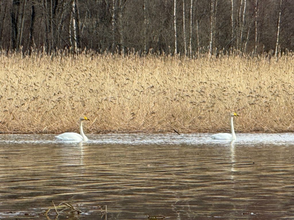В залив Лехмалахти прилетела пара лебедей!
