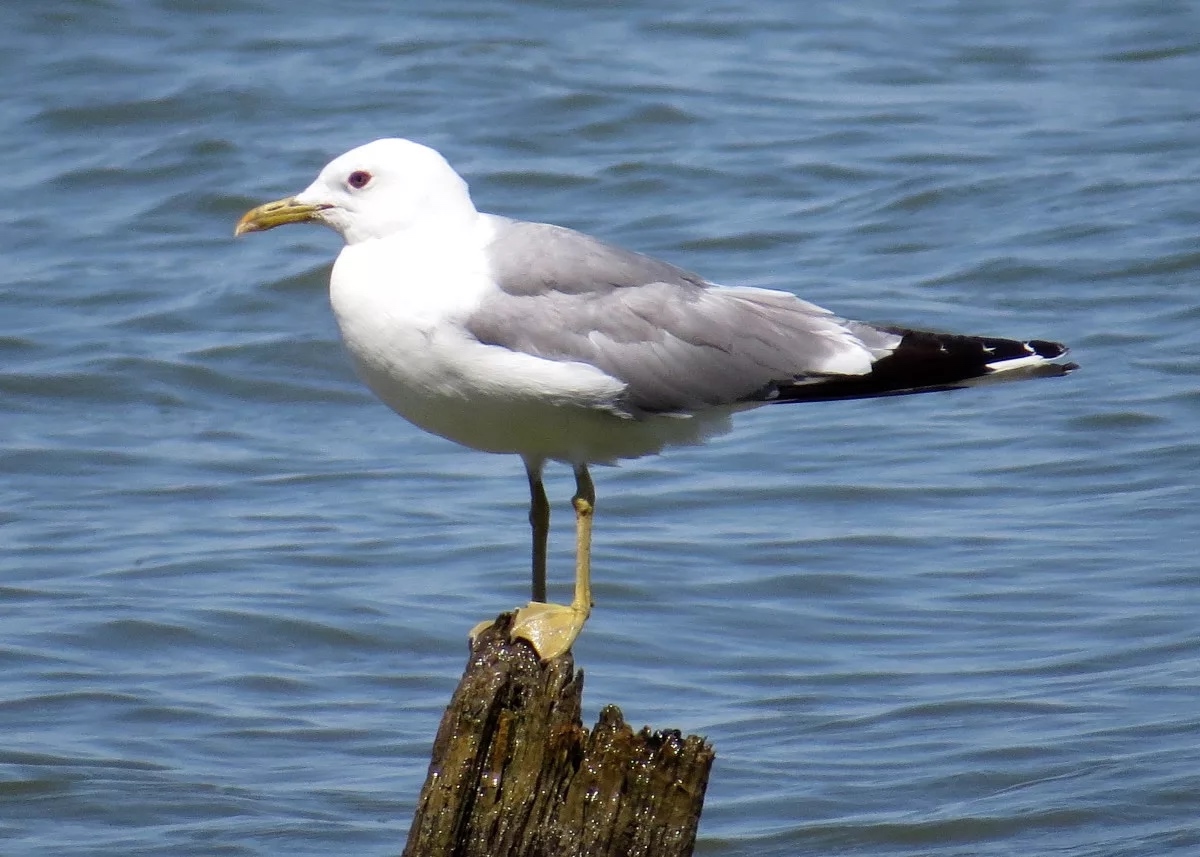 Сизая чайка похожа на серебристую, но мельче и не имеет красного пятна на клюве.