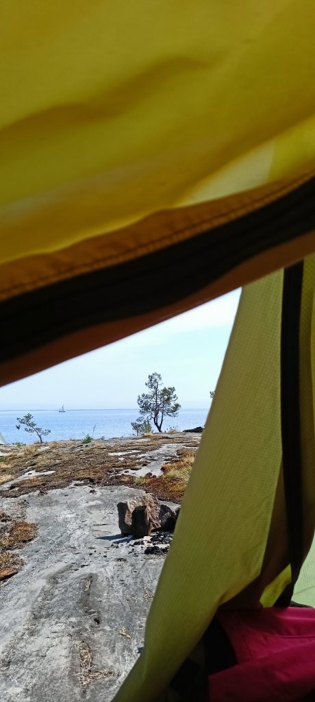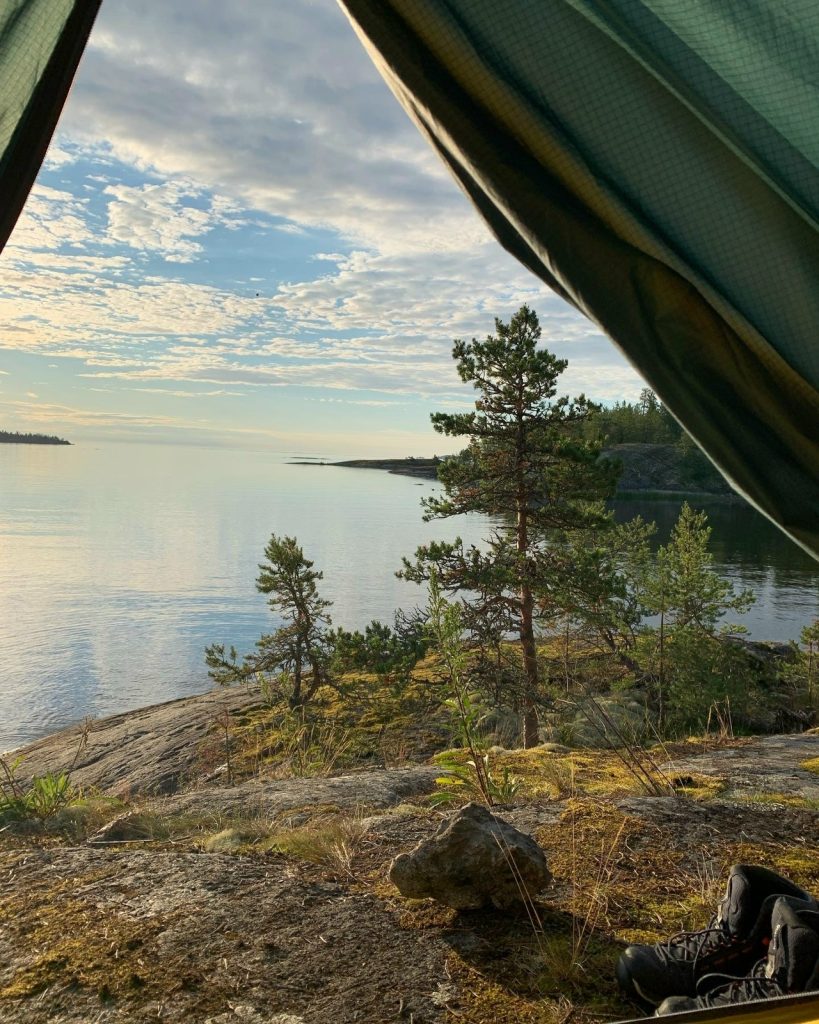 Перекусы для тех, кто отправляется в радиальные прогулки по шхерам и для тех, кто предпочитает отдыхать в лагере: бутерброды с колбасой и сыром, шпроты, огурцы, помидоры, печенье, конфеты.